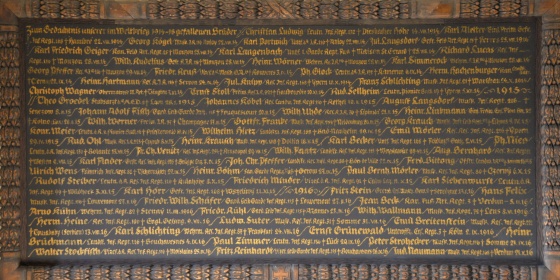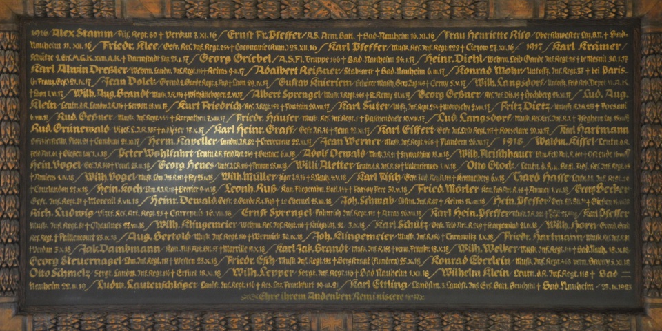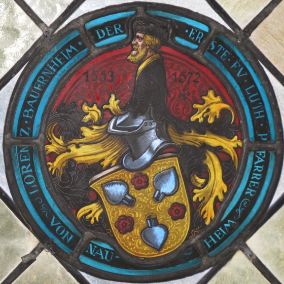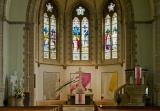 Die Wandgestaltung des Chorraums stammt aus dem Jahr 2006 und wurde von Tobias Kammerer gestaltet. In minimalistischer Form nehmen die Wandtafeln das Thema der Chorfenster auf. Das Silber steht für Weihnachten (Stern über Bethlehem), die violette Farbe für Kreuzigung und Tod, das Gold für Auferstehung. Die schwarze, strichartige Übermalung kann als die Lebenslinie Jesu Christi verstanden werden.